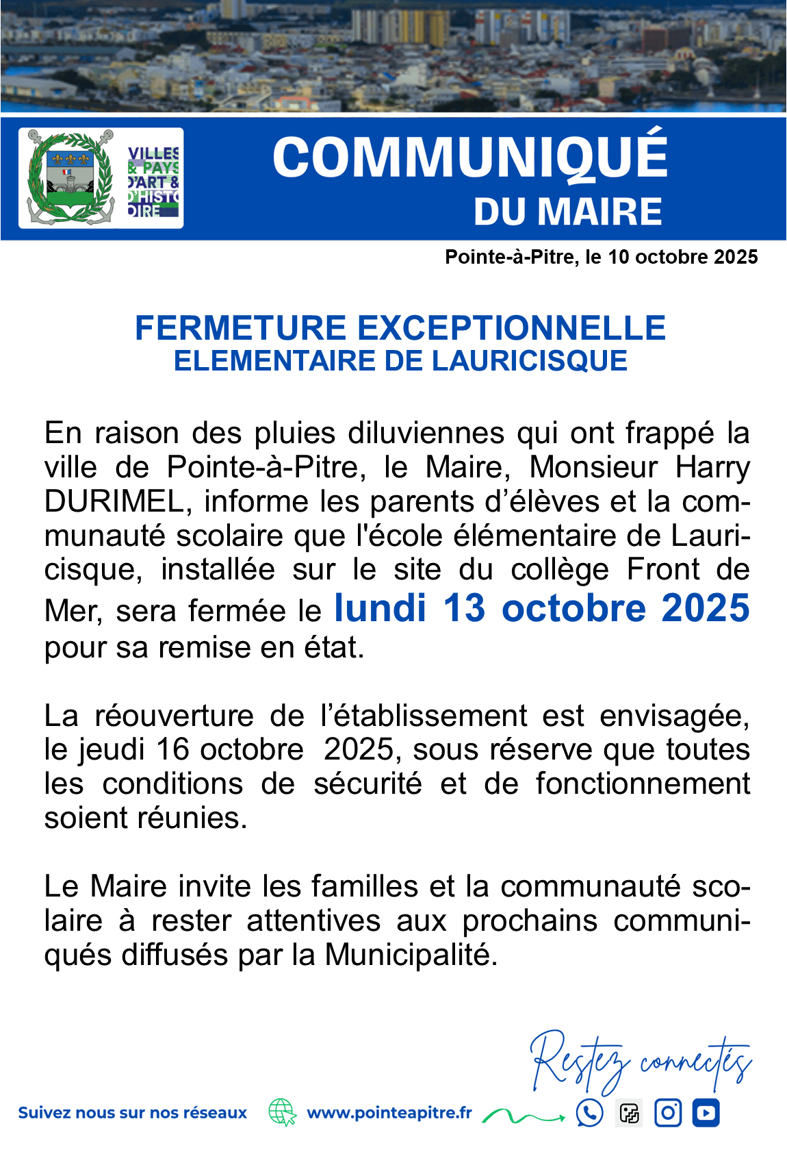 FERMETURE EXCEPTIONNELLE ELEMENTAIRE DE LAURICISQUE
