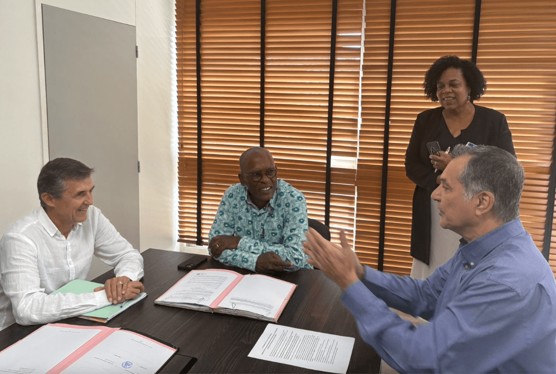 Le Mercredi 11 Février dernier, la Ville de Pointe-à-Pitre représentée par son Maire, Monsieur Harry DURIMEL, a accueilli successivement la SIKOA représentée par son Président, M. Thierry ROMANOS et son Directeur M. Nicolas GIGOT, puis la SIG représentée par son Directeur, M. Olivier BAJARD.