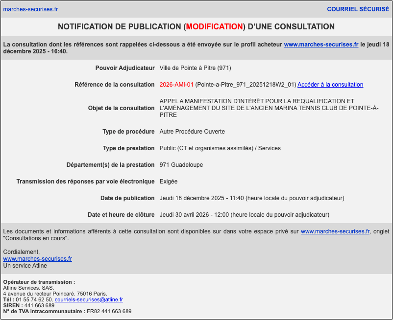Appel à manifestation d’intérêt : Requalification et aménagement du site de l’ancien Marina Tennis Club de Pointe-à-Pitre