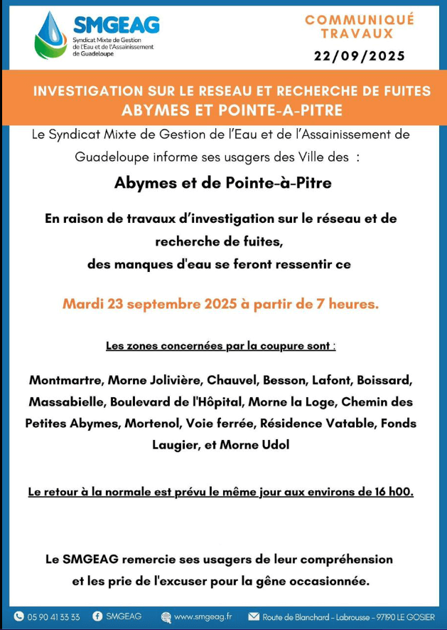 Communiqué SMGEAG : Investigation et recherche de fuites
